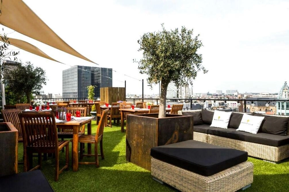 The hotel sits about 2625 feet from the Grand Place and Manneken Pis, roughly a stone's throw from the medieval heart of the city. It is a 12-minute walk to Brussels Central Train Station, making it simple to arrive by train and start exploring. For many guests the rooftop breakfast room is a highlight, with morning light on the Town Hall spire and local bakeries on Rue des Bouchers starting their ovens before breakfast service ends.